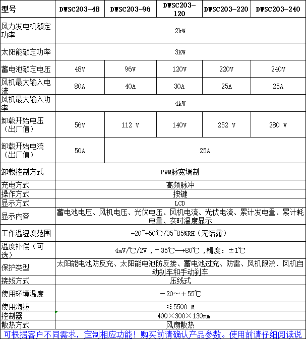 客户在订购高性能风光互补控制器时,需提供以下资料: